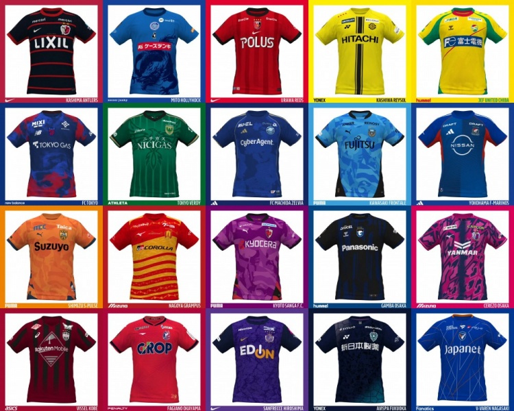 20支J联赛球队的球衣赞助商不仅有阿迪达斯、耐克、彪马这种大型公司,也有亚瑟士、美津浓、Hummel、NB、足球狗、尤尼克斯等中小型公司,球衣设计各有特色,呈现出百花齐放的局面。